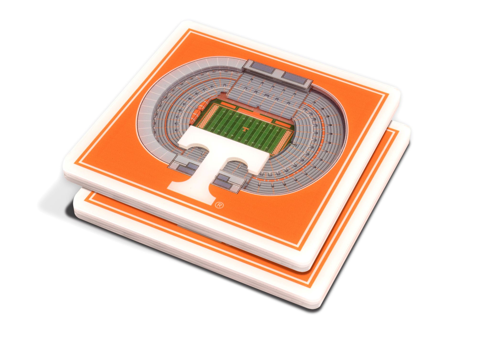 Add some team spirit to your table with the You The Fan® Tennessee Volunteers 3D Stadium Views Coaster Set.