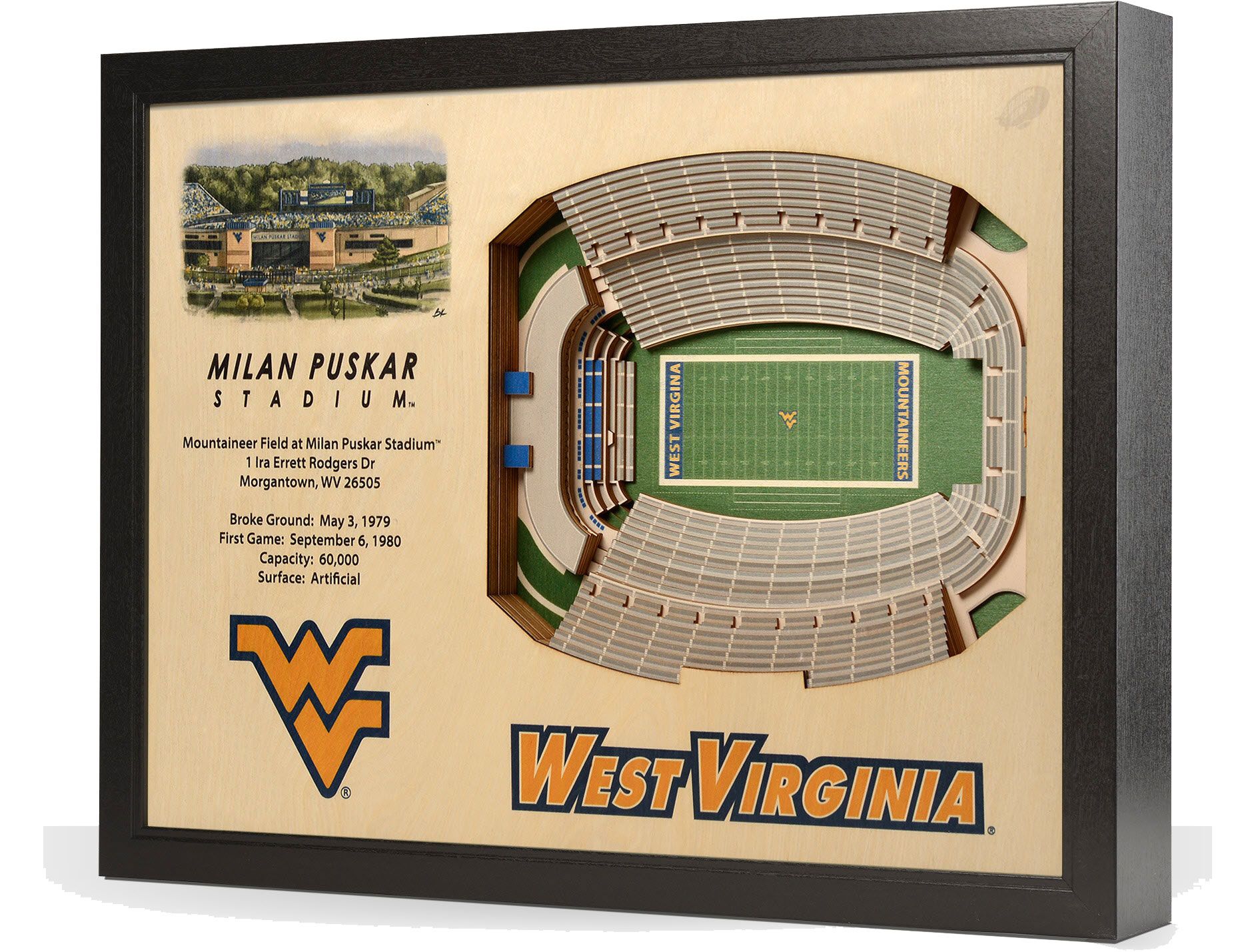Add a unique piece to your collection and pay homage to where your favorite team plays with the You The Fan® West Virginia Mountaineers 25-Layer StadiumViews 3D Wall Art.