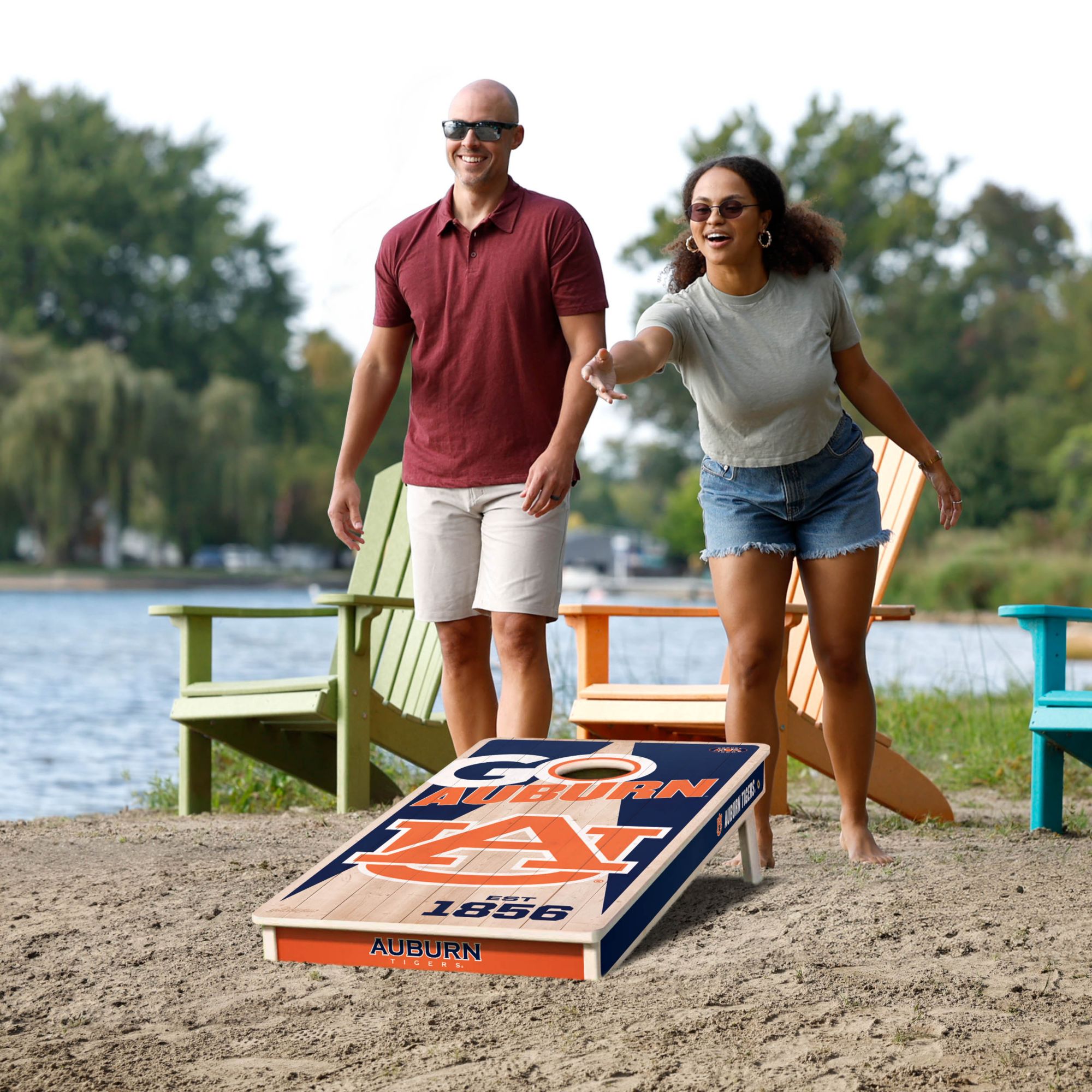 Auburn Tailgate Game. This product was perfect - it was gift for son-in-law! He was very pleased. Extra special with this set is that fact that it comes with the Auburn printed bags included. Most sets required you purchase separately.