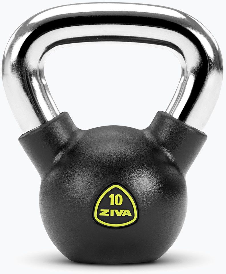 The kettlebell is a beautifully simple, full-body strength-building and conditioning tool. The ZIVA RPU Kettlebell takes this already perfect tool and enhances it with advanced wear-, rust-, and corrosion-resistant RPU coating that falls more softly than its conventional unadorned counterparts, making it ideal for the home gym. Its ultra-durable chrome grip is less prone to dings and scratches than cast iron or plastic and is designed without knurling to challenge and strengthen your grip. Iconic, bold styling make our kettlebell gym centerpieces worthy of display. The weight numbers are vibrantly marked for easy identification in vibrant ZIVA Yellow that matches perfectly with the surrounding black and chrome. Starting at 10 lbs. and going all the way up to 50 lbs., the RPU Kettlebell is an ideal tool for high-performance, high-intensity training.
