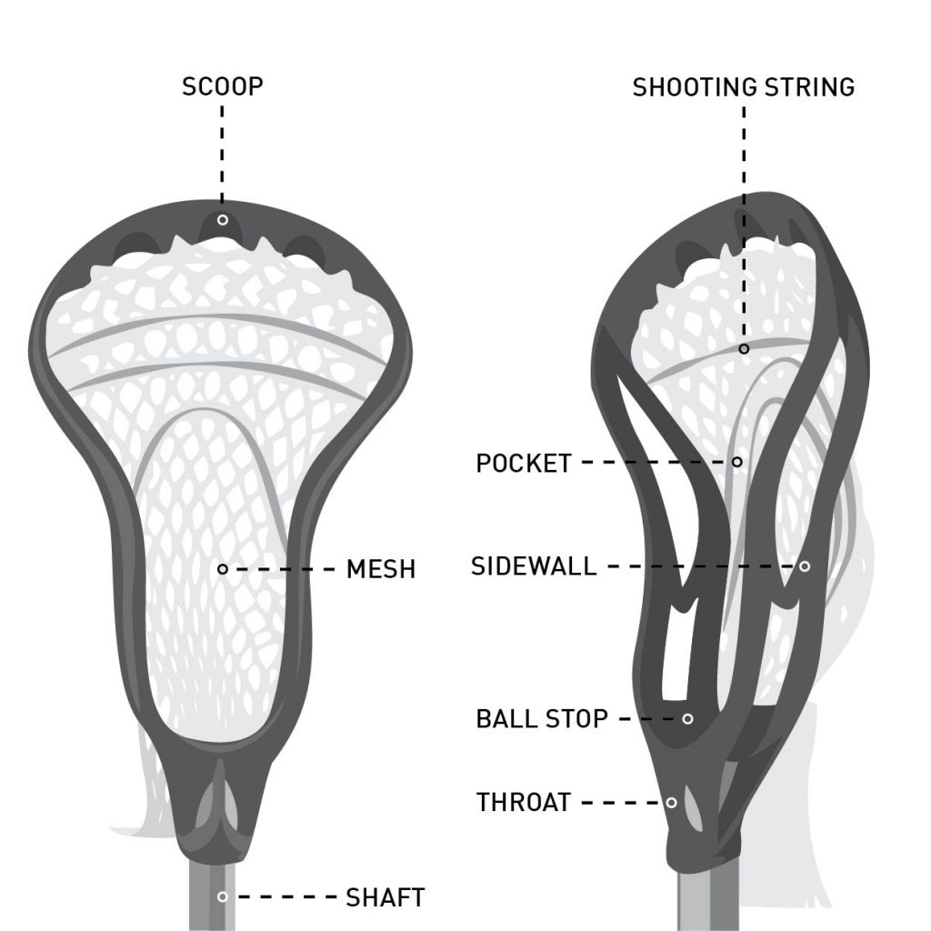Shooting strings are positioned horizontally near the top of the stick's head and affect the ball's balance and direction. Three or four shooting strings, commonly hockey skate laces, are used to make a smooth path for the ball to run out of the pocket while nylon strings are used for a "crisper" feel.