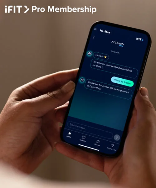 ¹Paid iFIT Pro membership required with equipment purchase and to access content and features. Membership auto-renews unless cancelled in advance. Free iFIT account, agreement to terms, and Wi-Fi required to operate equipment.